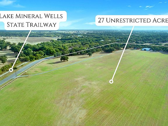 DEVELOPMENT POTENTIAL! Great location, close to a coveted Parker County small town with a great ISD, great people and more! Welcome to this beautiful AG EXEMPT 27 acre piece of unrestricted land WITH WATER in Weatherford, Texas: the Cutting Horse Capital of the World This property is located just across the road from a 20 mile trailway! This property boasts views of an improved coastal hay field skirted with mature hardwoods including Post Oak and Live Oak trees and deep creek. The 5,400 sq ft insulated shop is nested amongst lots of trees, complete with water, electricity, a cabinet shop and wood working equipment which may be included with an acceptable offer. Attached to the shop is another large barn space which is used for equipment but could easily be converted to a horse barn. Check out the cattle pens, including a tub and alley, simplifying working cattle and a large loafing shed providing shelter for all types of livestock. Like to fish? Check out the deep creek on the North side of the property. Even in a hot, dry summer, the creek has plenty of water in it providing a nice water source for livestock.