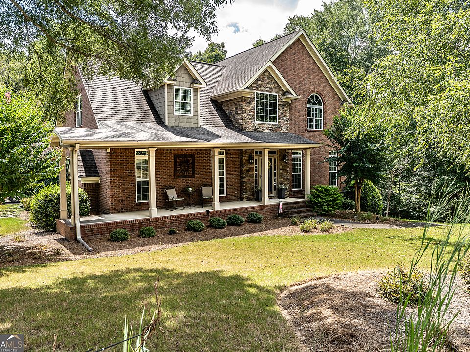 Exquisite Craftsman style two story home on unfinished basement nestled on a private corner lot in prestigious golf course community. This well designed home blends timeless architectural charm with modern comfort. Inside you will find a well designed home featuring gourmet kitchen with solid surface counters, custom cabinets, stainless appliances, rich hardwood floors, and expansive trim that showcase the craftmanship and attention to detail throughout. The family room includes a fireplace with gas logs ideal for everyday living and entertaining. The Owners suite is nestled in back of home on main level and offers trey ceilings, a walk in closet and a spa like bath with jetted tub, separate tiled shower and dual sinks. Additional secondary bedrooms are upstairs with a shared bath and huge bonus room. The unfinished basement provides incredible potential for future expansion with endless possibilities including a home gym, workshop, or private office. Enjoy morning coffee or evening breezes on the covered back porch overlooking the serene wooded views with well manicured landscaping. You will love to call this HOME!!!