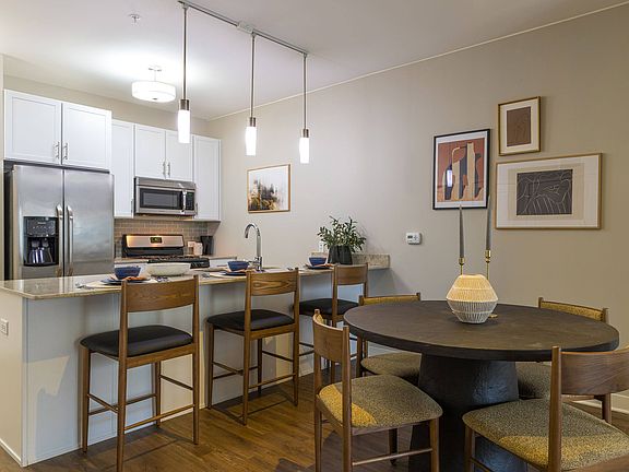 - Exterior features: Availability 24 Hours, Barbecue, Bicycle storage, Business Center, Courtyard, Dedicated electric vehicle charging spaces, Electronic Unit Access, Fire Pits, Free Weights, Gourmet Kitchen with Breakfast Bar, High Ceilings, High-speed Internet Ready, On-Site Dry Cleaning, On-Site Maintenance, On-Site Management, Open Floorplans, Package Receiving, Pet Relief Area, Plank Flooring in Living Areas, Private Dining Room/Conference Room, Short Term Lease, Theater, Upgraded 42" cabinetry