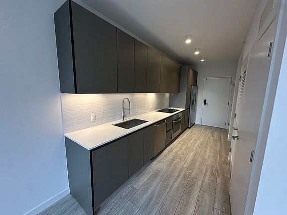 The kitchen features sleek cabinetry, quartz countertops, and stainless steel appliances, and the spa-inspired bathroom offers contemporary finishes with a clean, modern design.