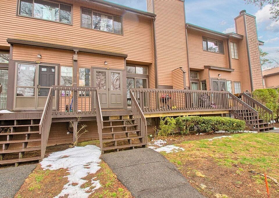 Wonderful Chelmsford Village offers good living inside and out! Nicely positioned in the complex is this lovely ~ 2 Bedroom, 1.5 Bath, 2 Car Garage townhouse. Beautifully done sun-filled kitchen w/recessed lighting, cathedral ceiling with skylights, wine fridge, gas stove, large granite island. Enjoy dinner in the dining room overlooking the living room with fireplace. Hardwood flooring on 1st and 2nd Floor, bathrooms with tile. Lower level offers perfect space for office or family room. Outside you will have plenty of opportunities for entertaining ~ front deck overlooking private area or spend time this summer playing tennis and cool down in the pool. Nice amenities in a fabulous location!