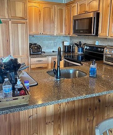 Hickory cabinets and granite countertops. Appliances are all within a few years old. The unit has a Water Softener which protects appliances and bathroom and kitchen fixtures against Killington’s hard water. Daily bus service to the mountain. 2 ski lockers. Association includes pool and outdoor hot tub during summer months, gym, tennis courts, and spa with indoor hot tub (newly renovated to be reopen this ski season).
