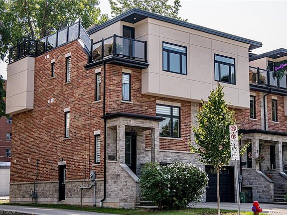 Stunning executive freehold town located in the heart of the Durand neighbourhood. This gorgeous multi-level end unit is flooded in natural light and impresses from the moment you enter, with polished porcelain tiles, rich hardwood flooring, floating staircases, crown molding, and pristine finishes. The open concept main floor features a formal dining room, a gorgeous gourmet kitchen with stainless steel appliances, 9 ft island with black granite waterfall edge countertop, and tons of cupboard & pantry storage. The oversized family room is perfect for entertaining with sliding glass doors to a balcony to enjoy your morning coffee. The sunny staircase leads to the 2nd level with 3 bedrooms and 2 full baths, including a spacious primary with walk-in closet and 5-piece spa like bath with quartz counters. Step up to the rooftop terrace with tree top views and private outdoor oasis with covered pergola sitting area to relax with a sunset cocktail, and bbq area to enjoy alfresco dining. The finished lower level features a den with sliding glass doors out to a newly fenced backyard with green space and patio. Stroll Durand Park right across the street, walk to James St. S, St., Joseph’s Hospital, perfect location for medical professionals, Augusta St. and its trendy new restaurants & pubs, or Locke Street S as well as schools, parks, churches & trails. Just minutes to Chedoke Golf, McMaster, the downtown core, public and GO transit and 403 make this home ideal for families or professional alike. RSA