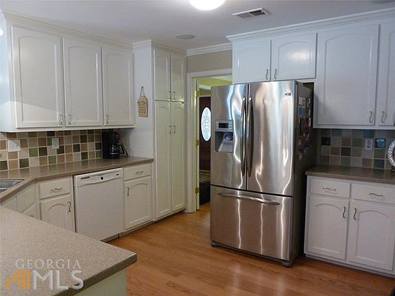 Fabulous 4 sided brick RANCH with hardwood floors in master bedroom, kitchen, breakfast area, dining room, family room and office. Office can be guest bedroom with built-in Murphy bed. Updated oil rubbed fans and light fixtures. Smooth ceilings throughout! Beautifully landscaped back yard is fenced and offers utmost privacy; huge patio is great for entertaining. The detached carriage house serves as 3rd car garage, ideal workshop and walk up attic storage. Master suite has French doors leading to patio; custom built-ins in master closet. Double ovens in kitchen are brand new; stainless refri