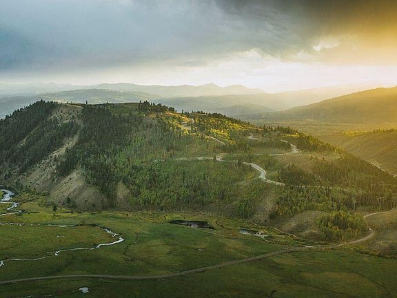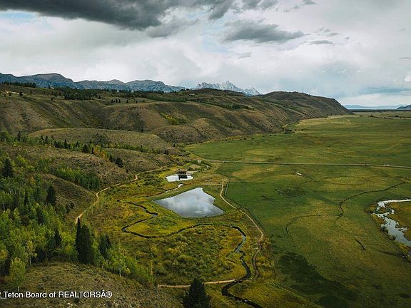 Soaring panoramic Teton Views from Ranch 8 Vogel Hill, the highest ranch site of the eight parcels. A hilltop sanctuary set on the top of the historic Wyoming homestead. Custom designed home plans by Mitch Blake are included. Gated access, a stunning western clubhouse on a trout pond, with spring creek access. Views encompass the entire Teton range, and look north across the Jackson Hole valley.