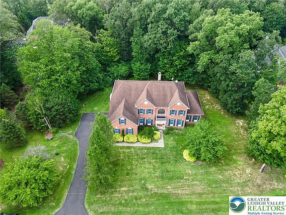Stunning 6-bed, 4.5-bath brick-front Colonial nestled in prestigious Estates at Great Bear. Gleaming HW flrs guide you thru an elegant main lvl feat formal LR & DR w/plush wall-to-wall carpet & Palladian arch windows. Dbl drs open to a conservatory w/vaulted ceilings, recessed lts & bright windows. The 2-story FR showcases HW flrs, recessed lts & cozy brick gas fireplace framed by more Palladian windows, filling the space with natural light. The modern eat-in kitchen is a chef’s dream, boasting granite counters, stainless stl apps, a tiled backsplash, wall oven, recessed lts & a ctr island w/bfast seating. The adjoining eating area provides access to the walkout Trex deck, where you’ll enjoy panoramic mountain views — perfect for outdoor dining & relaxing. Upstairs, the luxurious master ste feat plush carpeting, detailed moldings, recessed lts, a spacious walk-in closet w/custom shelving & a serene sitting area. The en-ste master bath is equally impressive w/tile flrs, vaulted ceilings, 2 vanities, a tiled walk-in shower & a linen closet. Princess ste, 2 add'l nice-sized beds & a Jack/Jill bath complete the 2nd lvl. The fully finished walkout basement adds living space w/LG rec area feat LVP flrs, recessed lts & a partially carpeted section ideal for lounging or entertaining. 2 add'l beds, full bath & versatile sitting rm or office provide endless flexibility. Close to US-209 & I-80 for easy commute, Shawnee Mountain Ski Area, Great Bear Golf Club, shops, restaurants & more!