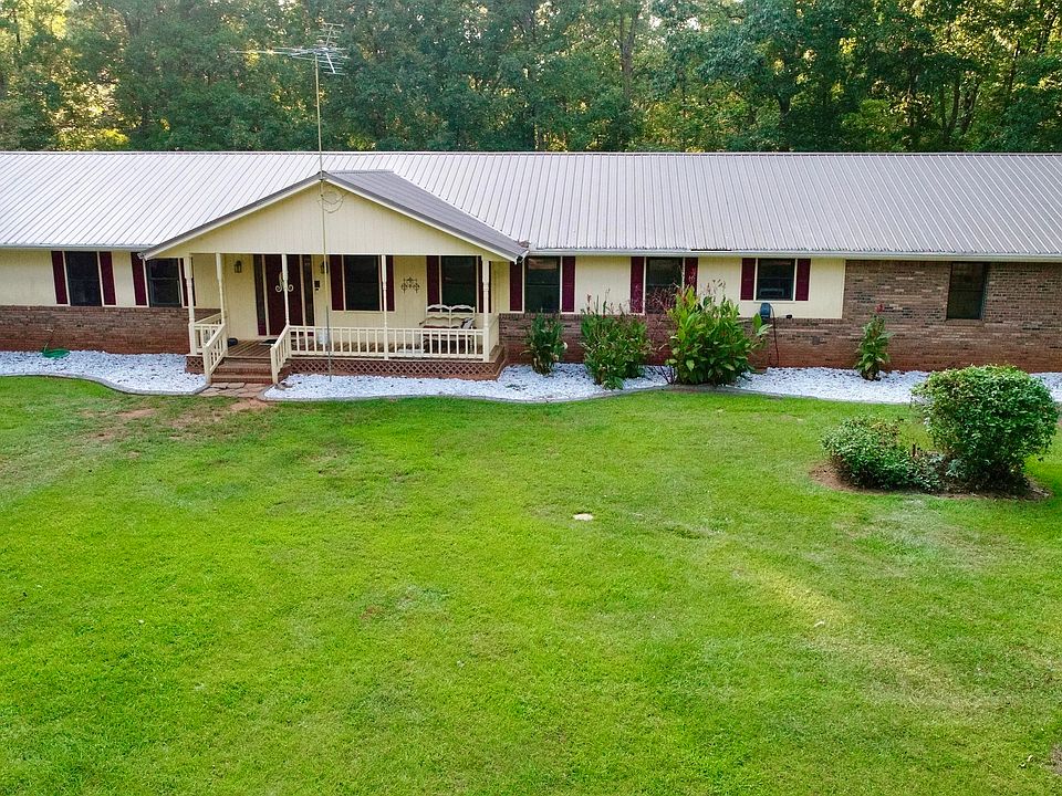 Discover a tranquil retreat nestled on 10.05 acres of enchanting wooded land with a private driveway, offering the perfect blend of serenity and convenience. This captivating property features a 4-sided brick exterior exuding timeless charm, complemented by a covered front porch and a screened-in back porch that invite you to savor the outdoors. Outside, you'll be captivated by the expansive 20ax36a detached building, equipped with water and electric hookups, providing endless possibilities for workshops, hobbies, or storage. As you enter the front door, the spacious family room beckons with warmth, featuring a wood-burning stove that creates an inviting ambiance. The heart of the home, the kitchen, has been thoughtfully updated to delight culinary enthusiasts. Revel in the allure of painted real wood cabinetry and updated granite countertops. A complete stainless steel appliance package is included! Adaptable to your needs, the separate dining room currently serves as a versatile fourth bedroom, offering flexibility for your unique lifestyle. A conveniently attached laundry room enhances functionality. The main hallway leads to a guest half bathroom, catering to the needs of visitors. Two guest bedrooms share a full bathroom, presenting comfort and convenience in equal measure. At the end of the hallway, discover the primary bedroom retreat, a peaceful haven. The attached bathroom has been thoughtfully renovated, featuring a new tile shower and updated fixtures that redefine relaxation. Unlock the potential of the daylight basement, where possibilities abound. The expansive den features a wood-burning stove, perfect for cozy gatherings or quiet evenings. A full bathroom adds to the basementas allure, enhancing its usability. Embrace your creative side with a workshop space, complete with a boat door for easy access. The basement offers a canvas of unfinished spaces, awaiting your vision and personal touch. This remarkable property invites you to create your own paradise, combining natural beauty with limitless potential. Donat miss the chance to make this extraordinary property your own!