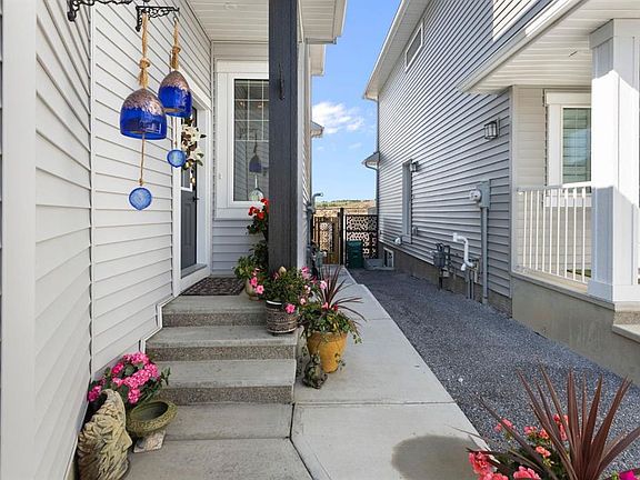 Welcome to this stunning semi detached, 4-level split home in the sought-after community of Heritage Hills in Cochrane. With 1,586 sq ft of developed living space, a walkout basement, and a double attached garage, this property blends dramatic design with modern comfort — all framed by stunning mountain and sunset views. You will fall in love the moment you arrive with the beautiful curb appeal this home presents. Entering inside, you are welcomed into the spacious foyer with high ceilings that set the tone for this home. The main floor showcases an open concept with a chef-inspired kitchen that boasts quartz countertops, high end stainless steel appliances including a gas range, modern cabinetry with gold hardware, and designer Cartwright Lighting fixtures. The adjacent dining and living areas are highlighted with rich finishes, a lovely electric fireplace and oversized windows. The patio doors lead you to a spacious 13 ft balcony with a gas line for your BBQ and water hookup for ease of watering, offering you the perfect spot to enjoy lovely summer days and beautiful evening sunsets. Moving up, you will find the spacious bonus room offering a beautiful space for you to relax and unwind or to enjoy a family movie or games night. There is a gas line as well for future addition of a fireplace. The next level offers a generous sized primary suite featuring a 3 pce ensuite with sleek quartz countertops and modern tile flooring. There are two additional bedrooms offering space and functionality, a full bathroom, and a convenient upper laundry room complete the level. The unfinished walkout basement is a blank canvas awaiting your ideas ideal for a rec room, gym, or guest suite. The double attached garage offers secure parking and plenty of storage space. The exterior is beautifully landscaped with a 6 ft wrought iron fence, wide concrete walkway, lower-level patio, and lush green lawn. Whether you’re entertaining, gardening, or simply relaxing, this yard is designed for easy living and will be sure to please. This property backs directly onto open land with no planned future neighbours behind. Even better, the adjacent field is being developed into a future Athletic Park featuring a lake, picnic areas, walking trails, sports fields, arenas, and a community gathering centre, a lifestyle amenity at your doorstep. With its rare split-level design, elegant finishes, and an unbeatable location, this Heritage Hills home offers both beauty and long-term value. An idillic location you won’t find anywhere else, just minutes from the Bow River, Ghost Lake, an hour from the mountains and only 35 minutes from downtown Calgary.. Don't miss your chance to see the one today.