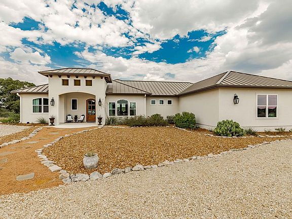 Beautiful home nestled in a gated community on 15 acres in the Hill Country. The hall and entry have barrel ceilings and open into the living room, with a gas fireplace. The all-white kitchen is a Chef's delight, it has marble and granite surfaces, two Dacor 36" under-counter ovens, a 36"Jenn Air induction cooktop (plumbed for gas), an under counter U-line icemaker, microwave, and dishwasher. Near the kitchen is a walk-in pantry, and across the hall, the utility with sink and freezer. The split design has the Master bedroom to the right of the entry, a small office nook, a bath with 2 vanities, a soaking tub, a shower stall, and a walk-in closet. Left of the entry is the second bathroom and the two bedrooms. This home is move-in ready, and beautifully decorated in NEUTRAL colors throughout. Access to the Guadalupe River is close by at the 24/7 park approximately 8 miles away. There is plenty of room to add a guest house if desired.