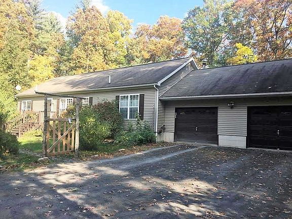 Like new, impeccably kept ranch on 3 acres on a very quiet country road in Stone Ridge. Open floor plan, with insert fireplace that heats up the entire house. Private master bedroom with walk in closet and full bath. Two additional bedrooms on opposite sides of the house with second full bath. Lots of closet space. Big kitchen with island, sliding glass door to back porch. Two car garage, and an attic for additional storage space. The basement is full and very clean; could easily be finished for additional living space. Yard is a local bird sanctuary, purposely landscaped for pollinators, hummingbirds, and butterflies. There is also, a peach, an Asian pear tree, cherry shrub, and blueberry bushes. Fenced in to keep deer out and your pooch in. This is a must see! Easy move-in, great for weekend or full-time home! Private driveway please do not enter driveway without appointment.