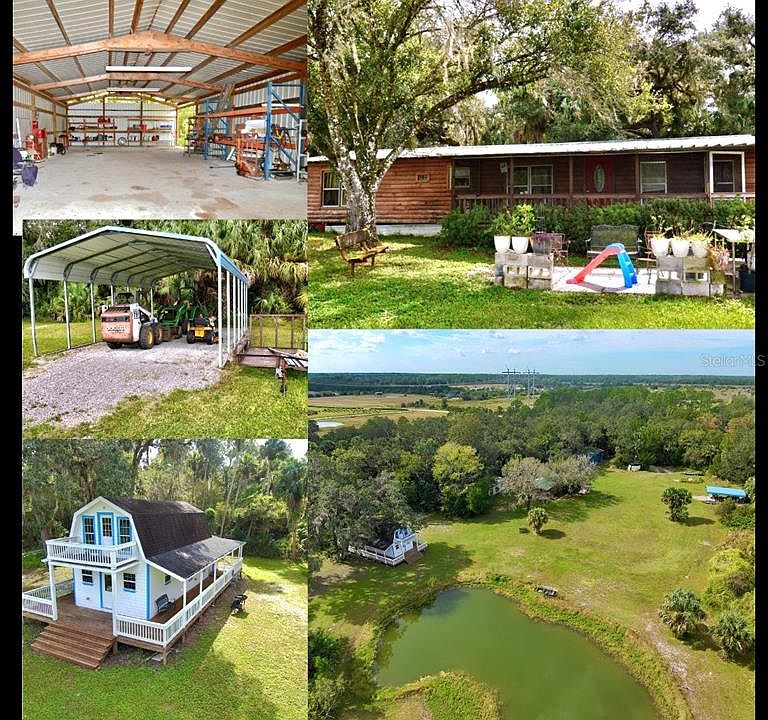 Price just reduced. Sellers welcomes offers. THIS PROPERTY QUALIFIES FOR CASH OR MAY QUALIFY FOR PARTIAL FINANCING / PARTIAL CASH ; LAST OPTION IS SELLER MAY CONSIDER HOLDING NOTE FOR 1 YEAR (MAX) WITH SUBSTANCIAL DOWN PAYMENT. WELCOME HOME! to 255 Starting Gate Road ; a sprawling Oasis of land meets home situated on 10.5+ ACRES of beautiful Pristine Florida Land WITH No Hoa and Not in a flood zone - Farming , Horse Friendly / livestock OK . RARE opportunity for someone looking to OWN 10+ ACRES with not 1 home but *3 total potential living dwellings in place making this the perfect MULTIGENERATIONAL PROPERTY where you could live in one home and rent out the others! As you enter the Super Private gated deep wooded pathway Upon entry to your right you will find a HUGE (1,800sq ft)POLE BARN WORKSHOP with ample space, storage and electricity for your TOYS , TRACTORS , RV's and Whatever else you can think of. To the right of the workshop is 3/2 split plan log Cabin style mobile home(apx 1456 sq ft ) -this is the home the owners lived in and IS in need of some exterior /interior repairs. -this is the home the owners lived in and IS in need of some exterior /interior repairs! Behind this home is a jobsite portable that was once a school portable (apx 864 sq feet) that has the space and potential to be possibly converted into a STUDIO living dwelling since its already equipped with its own FULL BATHROOM (currently used as a Mancave / music studio.) To the right a small distance away is the most ADORABLE 2 story 1 bedroom 1.5 bath Cottage w/ spiral staircase (apx 1100 sq feet) where you can imagine sitting on your rocking chair on your awesome wrap around deck. It is approx 95% complete and just in need of a few final touches & will need a Septic tank and drain field ;but does have water/electric/HVAC hooked up .You can view the entire grounds from the top balcony with beautiful sunset views overlooking a true freshwater pond stocked with ample Tilapia and Catfish. Additionally, there is a SEPERATE CARPORT (550sq ft) for additional multi car/equipment parking. All information and measurements provided above are intended to be accurate but cannot be guaranteed.