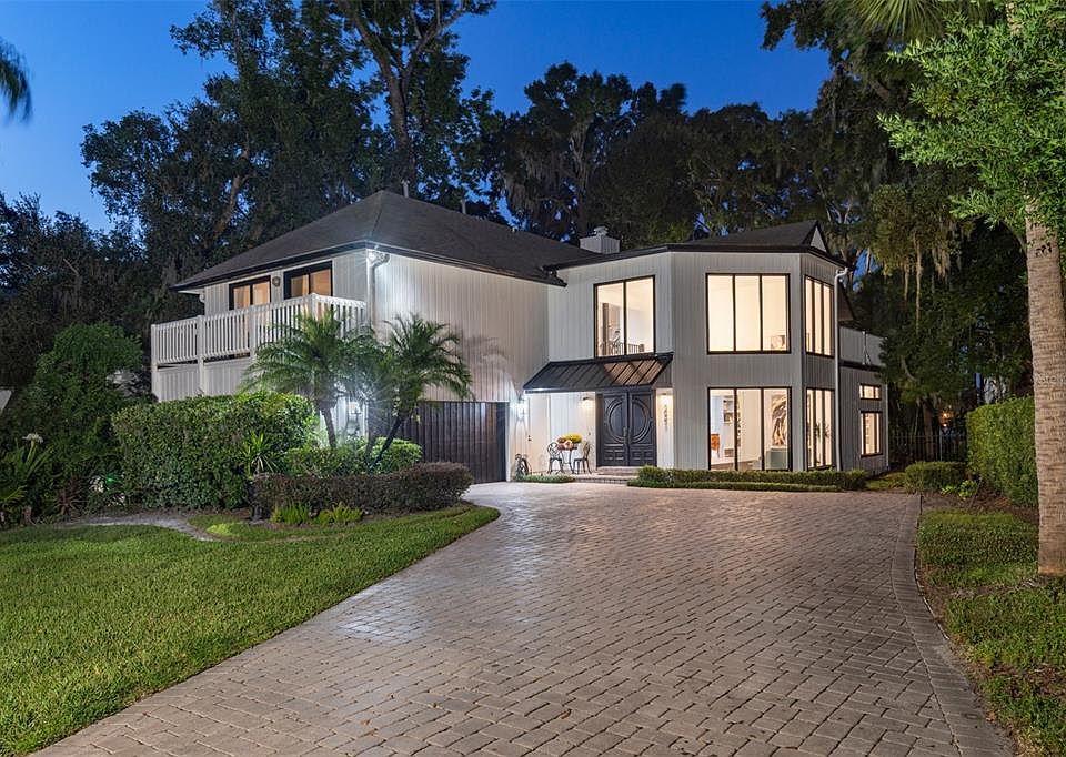 An incredible Winter Park Chain-of-Lakes opportunity on Lake Virginia with clear views of Rollins College. This transitionally designed home, situated in the highly coveted Virginia Heights, offers an opportunity like no other with proximity to Park Avenue coupled with the lakefront amenities through a Venetian canal system that uniquely connects five lakes and captures the quintessential Winter Park lifestyle. This four-bedroom three-and-a-half-bath home invites you into a two-story foyer surrounded by windows and natural light. The spacious kitchen features a mid-century tile backsplash, light cabinetry and a window out to the pool and lake. The main living space features a beautiful fireplace and back atrium that invites the stars and twinkling sunsets from the water. The separate dining room is spacious and there is an additional den or office space to round out the first floor. All bedrooms are upstairs and generously sized providing flexibility and the primary bedroom has the most incredible lakefront views. A clear water canal runs alongside the home and spills into lake Virginia adding to the ambiance of the backyard where nature abounds. Continue the existing renovation with your own style or build a house of your dreams. Impeccably located with shopping and dining at your fingertips as well as Rollins College. Fantastic schools with Audubon K-8 and Winter Park High. Don’t miss this one – call for your private tour.
