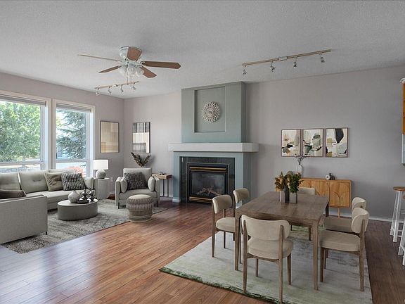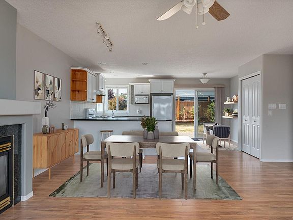 Skylights and windowsOpen-concept layoutThree spacious bedroomsLarge level patioPrivate fully fenced backyardLandscaped corner lotFruit trees