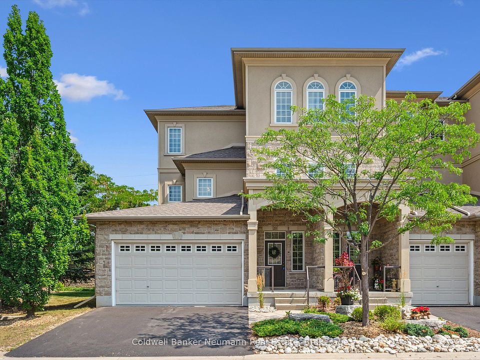 Welcome to 20-255 Summerfield Drive. An executive townhome in the heart of South Guelph, this residence offers a rare blend of luxury, convenience, and thoughtful design. Coming to market for the first time since it was custom-built by Thomasfield Homes, this home is one-of-a-kind, complete with its own private elevator. From the moment you step inside, a spacious foyer sets the tone for what's to come, inviting you up the elevator or staircase into 2,745 sq. ft. of refined living space. The open-concept main level features a chef's kitchen and bright living area finished with rich hardwood and tile. The living room's fireplace creates a warm focal point, while patio doors lead to a covered deck shared with the primary suite. The primary retreat is a true highlight with its large walk-in closet and spa-inspired 5-piece ensuite. A formal dining room with a wet bar makes entertaining effortless, while a second bedroom, full bathroom, den/office, laundry, and plenty of storage round out the main level. Take the elevator down to the fully finished lower level, where guests can enjoy their own private retreat. This space includes a third bedroom, full bathroom, rec room, cold cellar, and direct garage access ideal for visitors or extended family. With property management handling all exterior maintenance, you're free to enjoy everything this highly sought-after community has to offer. This is more than a home, it's a lifestyle of comfort, accessibility, and ease.
