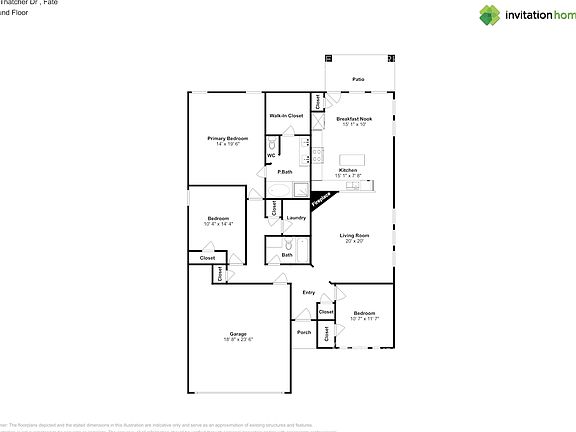 Home Features and Amenities: Air Conditioning, Breakfast Nook, Fenced Yard, Fireplace, Garage, Granite Countertops, Kitchen Island, Long Lease Terms, Luxury Vinyl Plank, Patio, Pet Friendly, Primary Bedroom on Main, Recessed Lighting, Single Story House, Smart Home, Stainless Steel Appliances, Tile, Walk in Closet, W/D Hookups, and professionally managed by Invitation Homes.