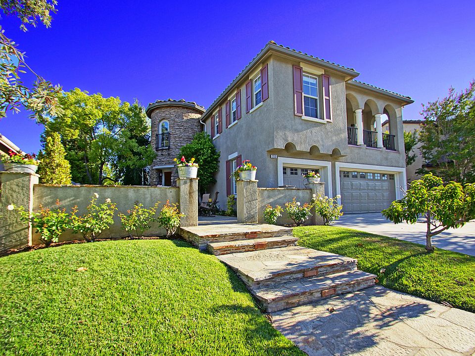 Wonderful 5 bedroom located on a flat cul-de-sac street, sparkling pool and spa to cool off in, and a short walk (or jump) to acclaimed Sycamore Canyon K-8 School. Cielo Real's popular Plan 2 provides one of the best bedroom/bath counts in this square footage! Stone accent front, extra large flagstone patio area with fountain out front to view the activities on the cul-de-sac. Enter to high ceilings, fresh paints and maple hardwood floors. 4 bedrooms up, and in addition there is a spacious office area for kids and 3 full bathrooms. One bedroom has balcony out front with mtn views. 1 bedroom and bath are downstairs. Granite island kitchen looks out over the pool and spa, with ample flagstone patios and BBQ island. Tile flooring with stone inlays. New tile floors in secondary bathrooms and newer counters. Spacious master bathroom with dual vanity areas, newer counters and tile floors, 2 walk-in closets and mountain views. Just a fabulous location close to school, hiking trails, and p