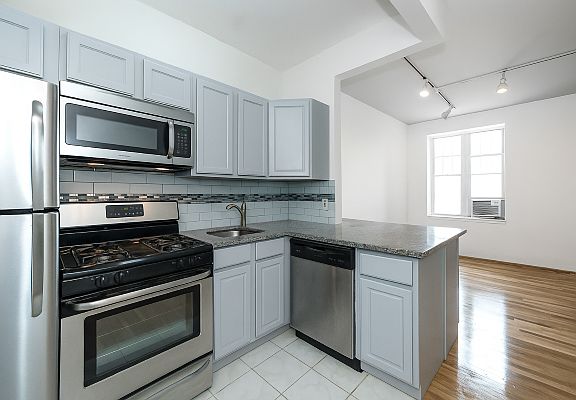Modern Kitchen Stainless steel appliances, including dishwasher & microwave