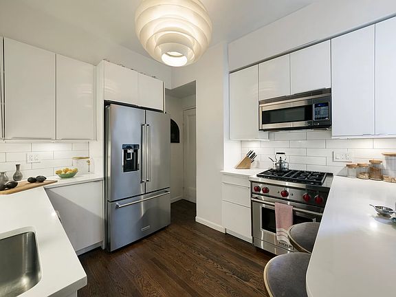 Upper Westside Hollywood Glamour This sun-flooded 7 room, almost 2,000 square foot home at The Alameda has it all - a flexible layout, graciously sized rooms, high ceilings, gorgeous prewar details, and a prime location. Off a semi-private elevator landing, one enters Apartment 4E into a gracious entrance gallery that immediately showcases the home's beautiful hardwood floors, high ceilings, decorative moldings, and natural light. The airy living and dining rooms have been opened up to create one great room that centers on a beautiful decorative fireplace and four large, east-facing windows. This grand room is perfect for both everyday living and formal entertaining, and can easily fit a dining table that seats up to 12. The bedroom wing is separated from the living spaces by a hallway. The oversized primary bedroom has three large wardrobe closets (one of which is a walk-in) and an oversized en-suite windowed bathroom with a large vanity (which could easily fit double sinks) and a step-in shower/bath. The second bedroom is spacious and has a large closet and en-suite windowed bath. The third bedroom is located off the great room, next to a lovely full bath that is perfectly situated to act as a powder room for guests. The renovated windowed kitchen includes Sub-Zero and Wolf appliances, an abundance of counter space, custom storage and counter seating for two. A casual breakfast area off the kitchen could also be utilized as an office. While technically the fourth floor, this apartment has the floor height of the sixth floor in other buildings, and features city views, partial sky, and lots of sunlight. In-unit washer/dryer and central air are permitted with board approval. Built in 1914, The Alameda is a preeminent full-service building located on 84th Street between Broadway and West End Avenue - in the heart of the vibrant Upper Westside and just a few blocks from both Central Park and Riverside Park. Residents enjoy a full-time doorman and porter, live-in superintendent, landscaped GREEN roof deck with both Hudson and Central Park views, and bike room. Conveniently located near the city's best public and private schools, as well as some of the Upper West Side's most notable restaurants, services, and public transportation. 75% financing, pets and co-purchasing permitted.
