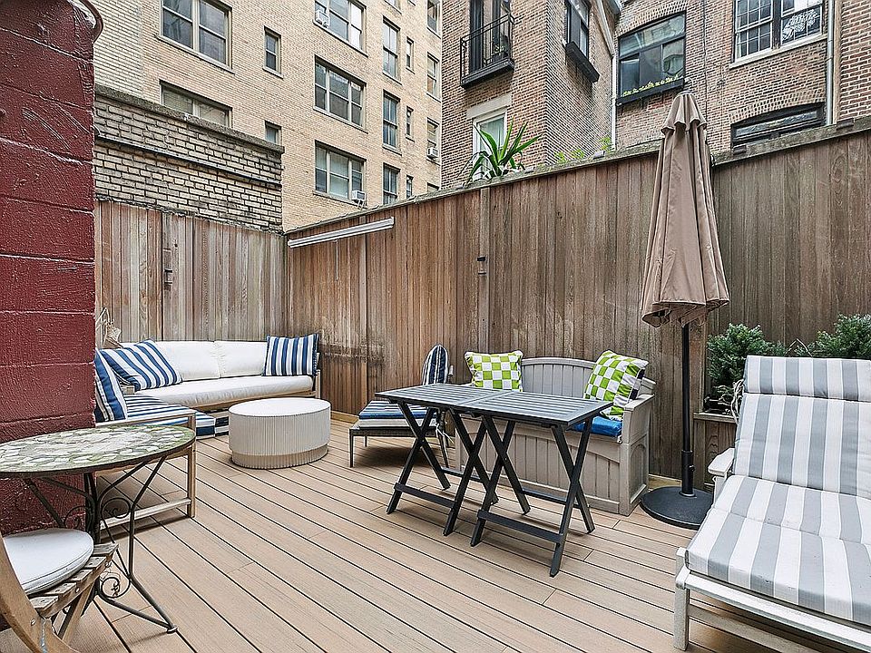 Sophisticated and turnkey, this newly renovated, pet-friendly 2BR duplex with soaring 16’ ceilings, and a large private backyard, blends prewar charm with thoughtful modern upgrades, in the heart of the Upper West Side.