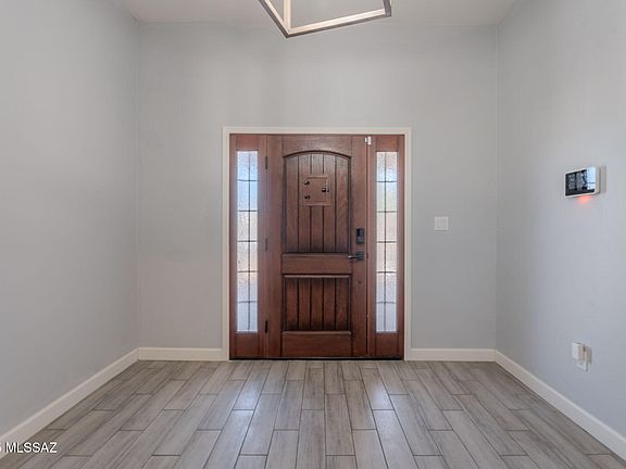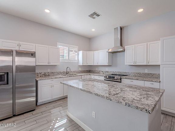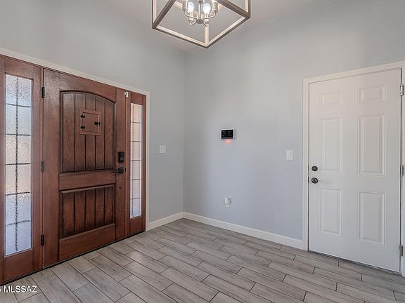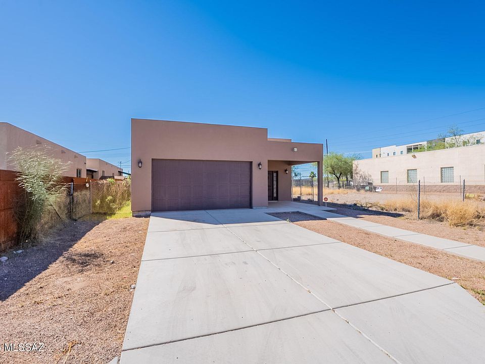 Step into style starting with the stunning front door welcoming you into a light-filled haven in the heart of Tucson. This 2021-built beauty offers 4 bedrooms, 2 baths & over 2,200 sq ft of thoughtfully designed living space. Inside, you'll find wood-look ceramic tile throughout, shutters on the windows, and a spacious great room that flows into a kitchen built for real life--complete with a focal point of a stunning hood, oversized island w/ breakfast bar & cabinets galore. The primary suite is a true retreat with his-and-her closets, walk-in shower & a double vanity bath. Outside, the low-care front yard is ready to greet guests, while the backyard is a blank canvas--perfect for your dream garden, play space, or outdoor kitchen. This home blends modern comfort with timeless charm.