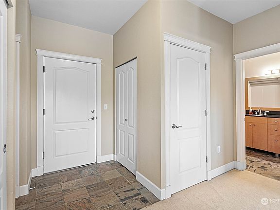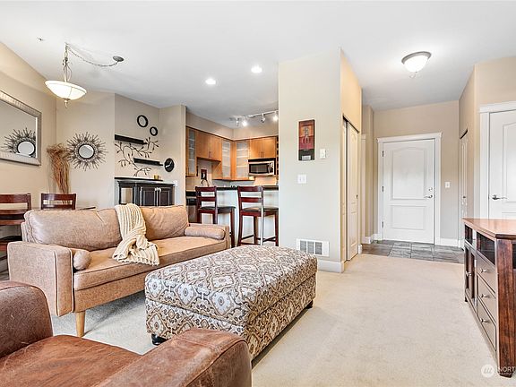 Stunning, fully furnished top-floor condo in the highly sought-after Centre Pointe complex. This spacious one-bedroom unit features a large walk-in closet and a generous bathroom. The building offers an elevator and wide hallways, making access to the condo and parking garage easy & pleasant. The home boasts a beautiful, fully stocked kitchen with an entertainment bar/seating area. The living room includes a fireplace and a deck. Recent updates include a newer hot water tank, disposal, washing machine, and kitchen faucet. the building has a secured entry, gated parking space, and storage unit. Amenities include a clubhouse for entertaining & workout room. Conveniently located near shopping and one mile to Whatcom CC.