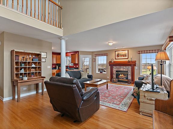 Welcome to this charming townhome, a perfect place to call your own! Located in the Heritage Hills Subdivision, this delightful two-story townhome features 2 generously sized bedrooms, 2 full baths, and 2 half-baths - offering the ultimate in hassle-free living. As you approach the home, you'll be greeted by a quaint front porch with a freshly painted door. Step inside to discover the spacious living room, highlighted by tall ceilings, neutral paint, and hardwood flooring throughout the main level. A cozy fireplace serves as the room's focal point, framed by windows that offer views of the private backyard with no rear neighbors-just beautiful green space that ensures added privacy. The open-concept layout creates a seamless flow between the living, dining, and kitchen areas, perfect for both relaxation and entertaining. The large kitchen is a chef's dream, complete with all appliances, abundant cabinetry, and spacious countertops. A built-in desk area could easily serve as a coffee bar or wine station. Whether you're preparing meals or hosting intimate gatherings, this kitchen provides everything you need, with easy access to the back deck where you can grill or relax in the sun. The adjacent dining room offers plenty of space for a nice-sized table and features lovely views of the front yard. Conveniently, the garage is easily accessible from the main level, and there's no shortage of closet space for coats, shoes, and everyday storage. A half-bath is also located on the first floor. Upstairs, you'll enjoy an open and airy atmosphere with a wide hallway leading to the oversized primary suite. Offering serene views of the green space, the suite includes a private en-suite with a double vanity, walk-in shower, and an expansive walk-in closet. The second floor also features a large laundry room, perfect for extra storage or hanging clothes to dry, along with a utility sink for added convenience. Bedroom 2 is spacious and offers two large closets-ideal for those who need extra storage or for seasonal clothing. A full bath is conveniently located nearby. All rooms are filled with natural light, creating a bright and inviting feel throughout the home. The full, partially finished basement provides endless possibilities with a family room that could easily be converted into a third legal bedroom, complete with an egress window for safety and natural light. Additional features include a half-bath, ample storage space, and a potential workshop area in the utility room. Located in the peaceful town of Maple Park, this gem is just a short distance from dining, shopping, and entertainment in DeKalb, Sycamore, and Geneva. The nearby downtown Maple Park, with its charming restaurants and shops, is within walking distance, and the nearby metro station adds even more convenience for commuters. With no HOA or SSA fees, this home offers value and peace of mind. A new HVAC system was installed in 2025 with a transferable warranty. Roof replaced in 2016. This well-maintained home, sold AS-IS as part of an estate, has been lovingly cared for by a single owner, is pet-free, and is sure to leave a lasting impression. 14-month home warranty included! Don't miss the opportunity to make this beautiful townhome yours!