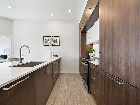 **BRAND NEW HOME ALERT** Great news for eligible First-Time Home Buyers – NO GST payable on this home! The Government of Canada is offering GST relief to help you get into your first home. Save $$$$$ in tax savings on your new home purchase. Eligibility restrictions apply. For more details, visit a Jayman show home or discuss with your friendly REALTOR®. LOVE YOUR LIFESTYLE! Les Jardins by Jayman BUILT next to Quarry Park. Inspired by the grand gardens of France, you will appreciate the lush central garden of Les Jardins. Escape here to connect with Nature while you savor the colorful blooms and vegetation in this gorgeous space. Ideally situated within steps of Quarry Park, you will be more than impressed. Welcome home to 70,000 square feet of community gardens, a stunning Fitness Centre, a Dedicated dog park for your fur baby, and an outstanding OPEN FLOOR PLAN with unbelievable CORE PERFORMANCE. You are invited into a thoughtfully planned 2 Bedroom, 2 Full Bath plus expansive balcony beautiful Condo boasting QUARTZ COUNTERS throughout, Upgraded cabinetry and sleek STAINLESS STEEL APPLIANCES featuring a paneled Fulgor refrigerator, paneled Whirlpool dishwasher with stainless steel interior, electric freestanding range with self clean and built-in microwave. Luxury Vinyl Plank Flooring, High End Fixtures, Smart Home Technology, A/C and your very own in suite stacked WASHER AND DRYER. This beautiful suite offers bright bedrooms with large windows, a storage area with a hanging rack, a large Primary Suite with a walk-in closet and en suite, a spacious dining/living area with sliding doors, an open concept layout between the kitchen, dining, and living room, and ample kitchen and bathroom counter space. STANDARD INCLUSIONS: Solar panels to power common spaces, smart home technology, air conditioning, state-of-the-art fitness center, high-end interior finishings, ample visitor parking, luxurious hallway design, forced air heating and cooling, and window coverings in bedrooms. Offering a lifestyle of easy maintenance where the exterior beauty matches the interior beauty with seamless transition. Les Jardins features central gardens, a walkable lifestyle, maintenance-free living, nature nearby, quick and convenient access, smart and sustainable, fitness at your fingertips, and quick access to Deerfoot Trail and Glenmore Trail. It is located 20 minutes from downtown, minutes from the Bow River and pathway system, and within walking distance to shopping, dining, and amenities. Schedule your appointment today!