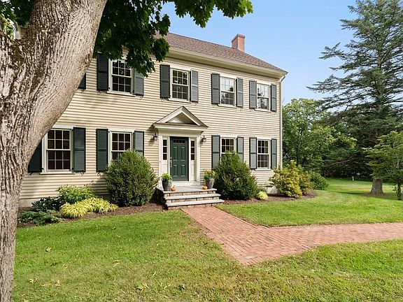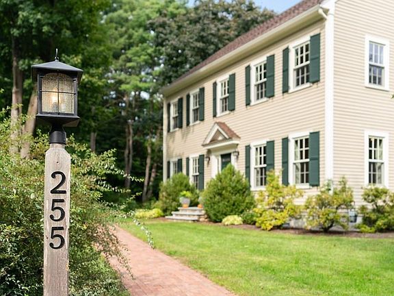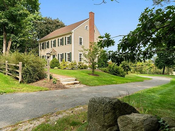 This beautiful & light-filled 4BR, 2.5BA colonial with pristine hardwood floors is on over 2 acres of pastoral land. The exterior has superb curb appeal with clapboard siding, classic shutters, double-hung windows, French doors & gorgeous private farmer's porch overlooking the serene backyard. The 1st floor boasts high ceilings, spacious living and dining rooms, & office with pocket doors. The open, bright kitchen offers a center island, quartz countertops, stainless steel appliances, a pantry, ample cabinet space and access to lovely back porch. Upstairs, bedrooms feature hardwood floors & generous closets with built-ins. The large walk-up attic and walk-out basement have great expansion potential. A detached, 4-car garage with storage. Professional landscaping, mature trees, open lawn, gorgeous granite steps, stone walls, and brick walkways complete this move-in ready house. Sherborn's top rated schools, bucolic Farm Pond, and expansive trails are waiting for this home's next owners!