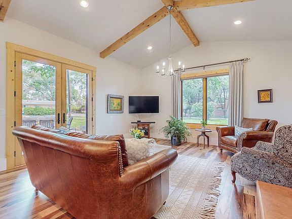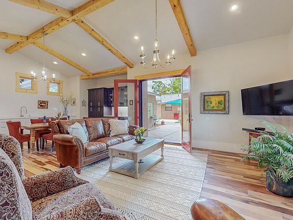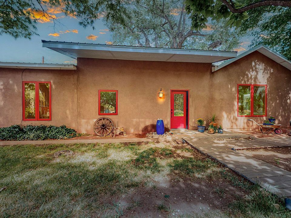 $11,000 concession with full price offer toward interest rate buy down or closing cost. Explore North Valley walking trails this charming Northern New Mexico style home sits on 1/2 acre park like setting. The serene year round outdoor patio living is perfect for entertaining or any event. The home has spacious layout & vaulted ceilings create an open & inviting atmosphere. The main has 2 bedrooms and 2 bathrooms. Primary bedroom includes a walk-in closet and updated bathroom! . Kitchen has gorgeous cabinets, Quartzite counters under counter lighting, stainless steel appliances. Casita includes bedroom and kitchenette. The separate flex room is perfect for an office, workout room, or reading room. This home will not disappoint! The acequia provides water for keeping the landscaping verdan