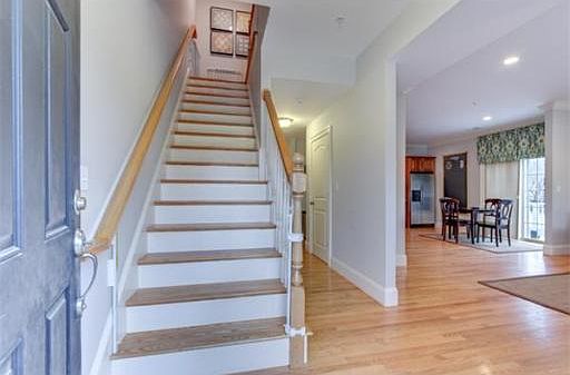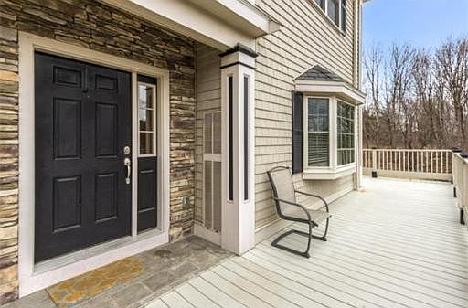 Luxury south facing townhouse condo at Barrington Place. This sunny corner unit has a private entrance and great open layout ideal for entertaining. The gourmet kitchen has granite counters, stainless steel appliances and opens to the dining area, living room & sliders to the side deck. On the upper floor is the master suite with a private bath, walk in closet and covered deck overlooking the side yard plus there is a spacious 2nd bedroom with a private bath and access to a covered deck. Convenient in-unit laundry included, first floor half bath, central air and hardwood oak floors throughout. Hard to find TWO CAR DEEDED GARAGE PARKING and storage area. Easy access to major routes (Routes 95, 90 and 2). Act now!