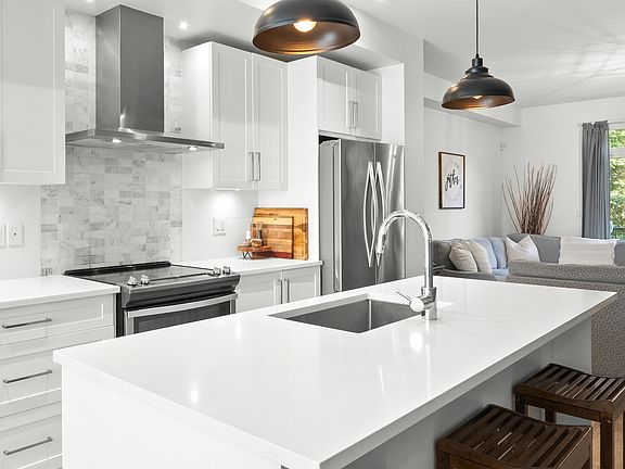 Spacious open-concept layoutBeautifully appointed kitchenDesigner tile backsplashStainless steel appliancesLarge islandStunning lighting package