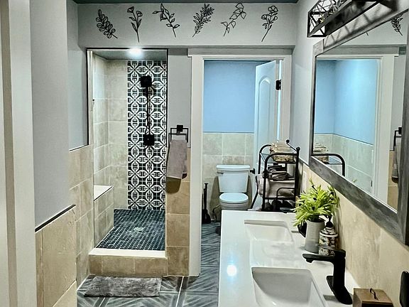 RARE find! Entirely renovated and completely FURNISHED- MOVE IN READY, this one-level contemporary home is designed for luxury, comfort, and convenience. Excellent central location, immediate access to highways and restaurants/grocery within 1 minute's walking distance. Plush mattresses and linens, high-end wood flooring, soft close kitchen cabinets with marble tops. The En suite bathroom includes a spacious tiled walk-in shower and modern quartz vanity with impeccable design. This house is set up for short-term and/or monthly stays, anywhere from 1-12 months depending on your needs. Just bring your luggage and you're good to go!