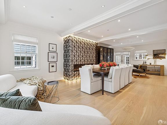 Ideally located in coveted Pacific Heights, this 3 bed/4 1/2 bath home has been meticulously remodeled w/4 levels of unparalleled contemporary design, comfort and luxury. Originally designed in 1910 by renown SF Architects Bakewell & Brown, the home has been reimagined for today's indoor/outdoor lifestyle by Mosaic Architects. The thoughtfully designed floor plan offers a large open LR/DR w/dramatic fireplace detailing, outdoor atrium, chef's kitchen/family room w/state-of-the-art finishes, appliances & stunning custom wood feature wall w/hidden storage & media overlooking an east facing garden w/walk out deck. The 2nd floor has a generously sized primary bedroom which includes a cozy sitting area, large closet & beautiful spa like bath, + 2 additional beds & 2 baths. The top floor offers a media room with fireplace, flanked by 2 decks with retractable doors showcasing the breathtaking bay & city views. Outdoor living is seamlessly integrated w/5 outdoor spaces. Perfect for entertaining or peaceful relaxation. Lower level has a guest bed/bath & gym off the garden + wine cellar & laundry behind a beautiful custom shoji screen. 2 car garage, storage & security system. Walk to the vibrant shops & restaurants on Union St, Chestnut St & The Presidio.The epitome of urban chic.