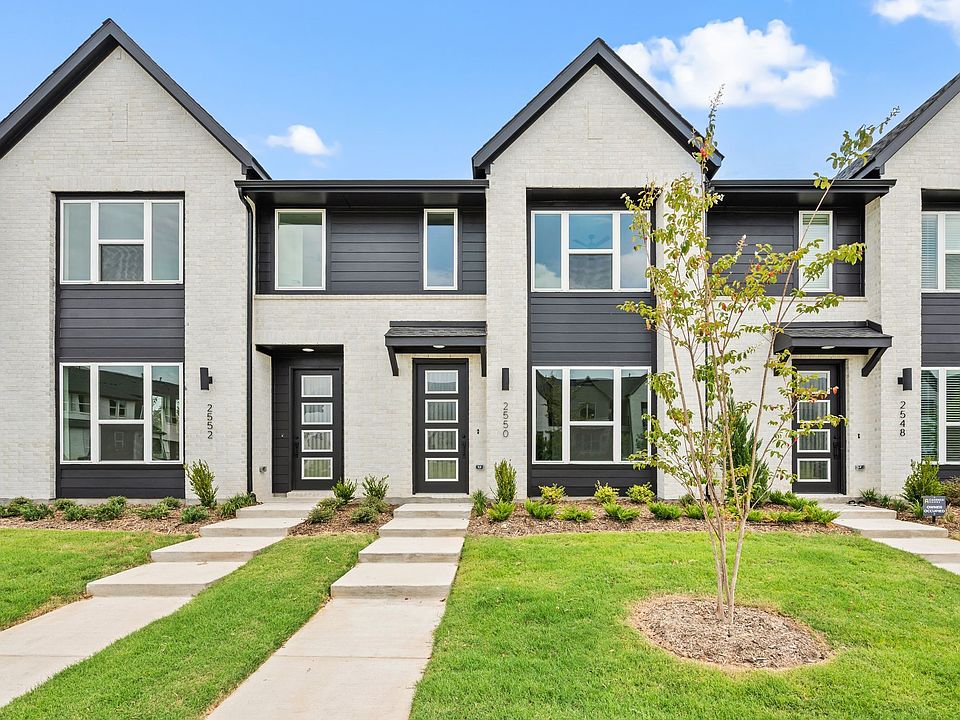 CADENCE HOMES BELLA floor plan. This home is perfect for two people or a small family to call home! Beautiful, two-story, modern elevation townhome with 2 bedrooms and 2.5 baths features an open living room, dining room, and kitchen. The kitchen offers under cabinet lights, pot & pan drawers, a pull-out trash cabinet, and a gas range. You'll find laminate Mohawk Revwood flooring on the main level plus upgraded tile in the baths paired with gorgeous countertops. Even the utility room has 12x24 decorative tiles. Upstairs you'll find two spacious bedrooms with upgraded carpet plus a small loft area that is perfect for a pocket office. The owner’s suite has a nice sized closet with 10’ ceiling for room to store seasonal clothing. The second bedroom is large and has an ensuite bathroom and a walk-in closet. 2 car garage attached. There’s a community dog park, a walking path to the Allen Cottonwood Creek Trails, and the Cinemark Allen 16 plus easy access to 121, Hwy 75 and the North Dallas Tollway. A new mixed-use development called Sloan Corners is also coming right across the street with dining and retail stores. MOVE IN READY NOW!