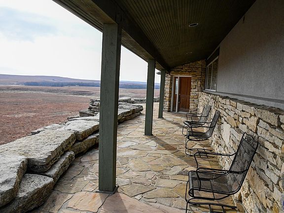 The notoriously well-known custom Haw Ranch House that sits wrapped by never-ending horizons of native bluestem Flint Hills grazing pasture. 126 acres of pristine native big and little bluestem grass pasture. 28 acres of watershed lake. 2,834 sq. ft. residence with 3 bedrooms and 4 bathrooms. 2 limestone fireplaces. All mineral rights intact.