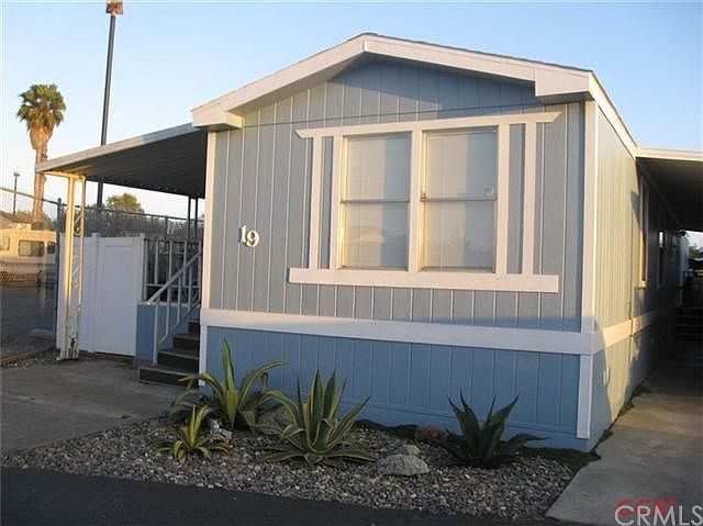 LOW LOW space rent on this nicely upgraded home. Corner lot gives privacy on one side. One of the largest fenced yards in the park. 2 bedrooms, but a 3rd bonus room is being used as a bedroom now. Excellent floorplan with bedrooms seperated by kitchen and living room. Pets allowed in this park. This cute, comfortable home is located close to the beach.