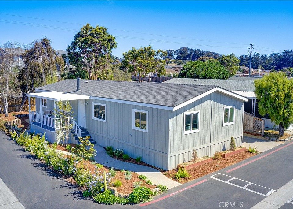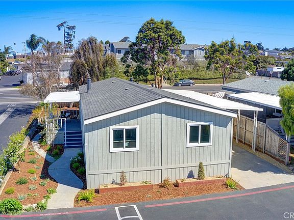 Welcome to 2550 Cienaga St Space 4, a FULLY RENNOVATED home just blocks from Pismo Beach, Arroyo Grande & a short drive from Oceano Dunes! ALL AGE PARK, LOW SPACE RENT! This home is BRAND NEW! New roof, windows, flooring, kitchens, batch, and cabinets; This 3-bedroom, 2-bathroom home offers 1,440 square feet of stylish, comfortable living, and its lot features a carport, modern landscaping, and a cozy back patio area. Step inside to discover a spacious main living area, highlighted by vaulted ceilings and numerous large windows that bathe the space in natural light. This area seamlessly integrates the kitchen, dining area, living room, and a sitting nook with a charming fireplace for cool evenings. The kitchen offers gorgeous chopping block countertops, recessed lighting, matching stainless steel appliances, and contemporary white cabinetry. Conveniently located off the kitchen, the laundry room doubles as a mudroom with direct access to the backyard. The primary bedroom is a comfortable space, offering a nicely sized closet and a private bathroom with a modern double vanity. Two additional bedrooms, each with their own closet, are thoughtfully situated near the guest bathroom. Nestled in the Porticos Mobile Home Park, this home is ideally positioned near the entrance for easy access. Don’t miss the opportunity to make this newly updated home yours!