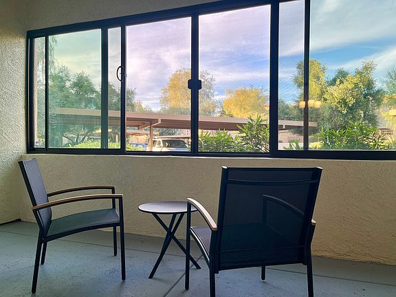 - Enclosed patio/Arizona room that can be used as a third room (living or storage space) - overlooking lush lawns and greenery.