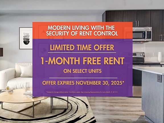 - Special offer! Limited Time Offer: 1-Month Free Rent on select suites! - Offer expires November 30, 2025. Subject to change without notice. Conditions apply. See a Leasing Representative for more details. E. & O. E.