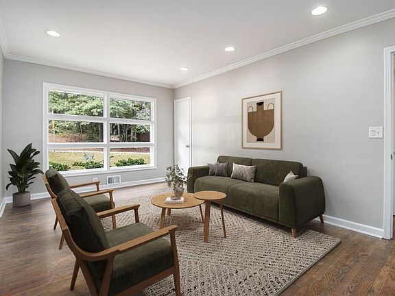 Updated White Brick Bungalow in Sought-After Conley Hills! Perfectly positioned just minutes from Sumner Park and surrounded by countless Shopping and Dining options in East Point, this prime location offers effortless access to Downtown Atlanta, Hartsfield-Jackson Airport, and all major highways. Curb appeal begins with a Spacious Front Lawn, welcoming you inside to a Beautifully Renovated interior filled with Abundant Natural Light. The Open Concept Floorplan showcases Crown Molding, Freshly Painted Walls, and Hardwood Floors that flow throughout the main level. The Living Room seamlessly opens to the Dining Area and a Stylish Kitchen complete with White Cabinets, Stone Countertops, Stainless Steel Appliances, and Stone Tile Flooring. Three Generously Sized Bedrooms share a Fully Updated Hall Bathroom featuring a White Vanity, Stone Tile Accents, and a Shower/Tub Combo. Downstairs, a Full Unfinished Basement with Tall Ceilings provides endless potential whether for Storage, a Home Gym, Office, or Workshop ready for your personal touch. Step outside to a Grassy Backyard, perfect for Grilling Out, Play, or Hosting Friends. With its Thoughtful Renovations, Functional Layout, and Unbeatable Location, this Conley Hills Gem is ready to welcome its next owners home!
