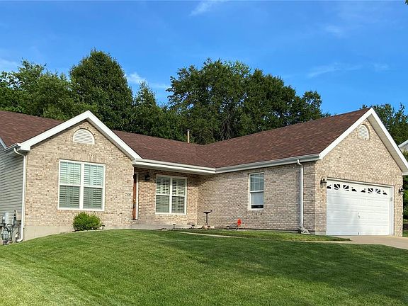 Beautiful 3 bedroom open floor plan ranch.This home has amazing curb appeal w/ a complete brick front.From the moment you enter you will love the soaring ceilings in the great rm & dining rm which has a large picture window for plenty of natural light & a chandelier.The kitchen has 42" cabinets, newer appls, breakfast bar, pantry, gorgeous wood floors & breakfast rm that leads out to a deck & patio which backs to trees & is perfect for entertaining.This home features a split bedrm floor plan, the master bedrm has a ceiling fan, newer carpeting, his & her closets & a large luxury master bath w/ jetted tub, walk in shower & double bowl vanity.There are 2 addl lrg bedrms & another full bath.Down the open staircase you will find a partially fin lower LL just awaiting your finishing touches & storage closets w/ built in wood shelving.You will also love the main flr laundry & some of the updates include: plantation shutters through out,HVAC, roof, garage door & deck.This is a must see!