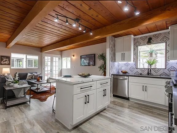 Welcome to the highly desirable neighborhood of Bay Park! From the second you walk in the door you'll fall in love with the beautiful designer kitchen with modern backsplash designs, stainless steel appliances, quartz counter tops, updated floors and open wood beam ceilings throughout. Brand new roof and brand new Air Conditioning unit with Nest Thermostat installed recently to keep you cool on those hot summer days. Walking distance to the beautiful Mission Bay Park, grocery stores, restaurants and the new Trolley Stop on Morena Blvd. Come take a look, you won't want to miss this one!