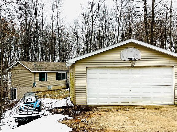 Stylish newer Ranch style home located on picturesque wooded 4.5 acre parcel. Property boasts of rolling hardwoods and privacy on quiet paved County road near Bellaire. Home features include full walkout basement ready to finish off with extra high ceiling and plumbing drains already installed for future bath, Top line 'Fire Chief' wood burner for supplement heat, En suite main bedroom with walk-in closet, detached garage, main floor laundry, stainless steel appliances, and much more. All at an affordable price.