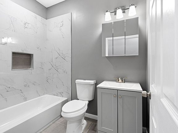 Contemporary bathroomStylish cabinetrySleek fixturesModern unitModern appliancesRenovated kitchenRenovated one-bedroom apartment