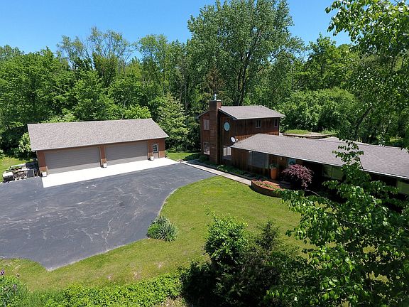 Enjoy your morning coffee overlooking the beautiful serene view of your flowers in your beautifully wooded 4.66 acre private paradise. Sit on your back deck surrounded by nature enjoying your very own private nature preserve. This property is in the highly sought after Goose Lake Association which includes all private lake rights for fun in the sun swimming, fishing, boating and water skiing. Vacation year round in your own hidden paradise just minutes away from I-80 and I-55. This spacious move in ready 4 bedroom 3 full bath home has many updates including Anderson low e windows, 10 year old roof, new custom kitchen with stainless steel appliances and LVT flooring. The property has a newer heated 32x48 outbuilding for your vehicles including a Tesla EV electric charging station. Plenty of space for all your water craft for enjoying your lake access. Call now for your private showing!
