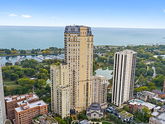 Perched high above the city, this premier upper-level split two-bedroom, two-bath home captures breathtaking views of Lake Michigan, Lincoln Park, Navy Pier, and the Downtown skyline, with a dazzling backdrop from every room. Floor-to-ceiling windows bathe the interiors in natural light, creating an atmosphere of quiet sophistication and timeless comfort. Each day feels like waking up in a five-star hotel. Residents enjoy an unparalleled collection of amenities, including a sunlit lap pool, rejuvenating sauna and steam rooms, a state-of-the-art fitness center, and a serene walking path. For leisure and connection, there's a game room, theater, and an elegant library lounge with billiards, this all complemented by exceptional building staff and on-site conveniences such as dry cleaning. Designed for those who appreciate luxury, comfort, and spectacular views, this Lincoln Park residence offers a lifestyle that's both effortless and extraordinary