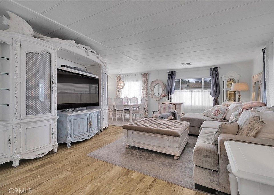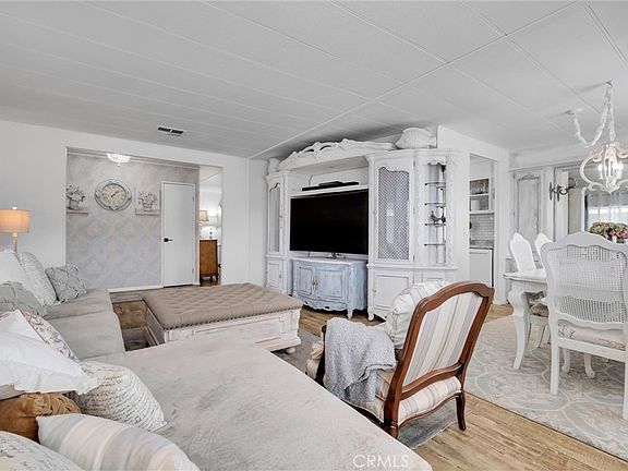 A Beautiful Doublewide Mobile Home with Beach Cottage Design Accents, Magnanimous Views of the DTLA City Lights and Bluff Views all the way to the Harbors! Feel that Ocean Breeze at the top of the Hillside where thiis completely and recently Upgraded home lies in the much sought after Skyline Mobile Park! You will exhale with peace and tranquility when you enter this Gorgeous and Affordable Home! From the scent of the front garden entrance with their David Austin Roses and the scattered Lavender Mexican Sagebrush Flowers, to the Patio Deck Entrance with an invitation to this Gloriously Upgraded Home, with pine composite wood flooring and the freshly painted white paneled wooden walls. The Living room is comfortably spacious and connects to the dining room with it;s white wooden hanging lamp, nearby newly installed Blinds to enjoy the western sunlight and some Rose patterned curtains and builtin cabinets to keep your favorite items and pictures. As you glide through, the Bright Kitchen with all it's recent upgrades, New Refrigerator, New Stove, Broiler Oven and New Gas Burner Stovetop, New Dishwasher is also connected to both the second dining room area space near the Entry way. The Bedrooms are both Relaxing and Spacious with Mirrored Closet Doors. The Master Bedroom boasts of a walk-in closet and connects to the Master Bathroom which is freshly upgraded with a splash of various Platinum and light colored countertops and a walk in shower with clear glass doors and lots of shelfing for your personal products. There is a dedicated Laundry room which has an exit door to the covered carport space and shed, and it will bring you back to the beautiful bluff views in the back for more Ahhhh....Views!! This is a Gorgeous home and it is waiting for you to claim it!!!