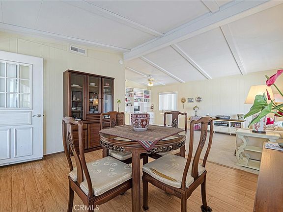 This Gorgeous 1977 Mobile Home is full of lots of space, 1200 sq ft, 3 Bedrooms , with one bedroom if preferred, that can be also be used as a sunroom at the entrance, 2 Full Bathrooms, lots of upgrades and that modern and cared for touch is abound everywhere! Oak Pine Flooring, with special Maple Flooring in the kitchen, giving it that lovely glow as you glide through the home. The Master Bedroom has ample Closet space with shelves inside, carpeting for warmth, and is connected to a large full sparkling bathroom with lots of light and handrails in the tub/shower for your safety and comfort. The second bedroom is also very roomy with lots of light and has an adjoined full bathroom that has a door to the laundry room with another side exit door wih full steps and rails. The kitchen has plenty of table and serving space and is enveloped and private from the rest of the house. All the modern conveniences are closeby for daily meals preperation and sit down comfort! Around the corner from the kitchen is the small dining room area, with table and chairs room and with lots of built-in cabinet space for all your treasures to display and for all of your filing needs. The dining room then invites you to the huge Living room and Full Dining room for lots of invited guests to enjoy and for your entertaining them comfortably! The home is located near the pool, but far enough away to not hear the sounds emmitting from the Pool, Clubhouse or the Pacific Coast Highway street traffic.. This is a Gem that is calling you to make it Your Own!