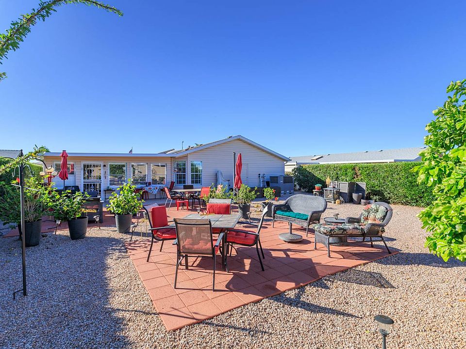 This STUNNING St Andrews is on one of the BEST lots in the community!!...the HUGE outdoor space is very private and ready for gatherings. The home is a beauty with upgraded counters and flooring, shutters, new fixtures, new water softener and R/O, new appliances and the list goes on and on. This home is a 2 bed 2 bath with a den AND an additional AZ room that is climate controlled as well as a separate laundry room! You really can't go wrong, this home won't last long it's a WINNER! Call today for a tour! AWESOME Backyard! Nicely Updated! Experience Thesman Communities Lifestyle, we are an active 55 plus community where luxury meets affordability. For over 40 years we have set the standard with world class amenities and year-round activities. Our community is a 24-hour gated community, with a beautiful 30,000 square foot clubhouse including ballroom, fireside lounge, library with computers and individual rooms for cards, billiards, arts & crafts and fitness center. Enjoy outdoor amenities heated pool & spa with cabanas, BBQ area, putting green, pet park, sport courts for pickleball, tennis, bocce, shuffleboard and basketball. Our activities director assures a full calendar of social and recreation events. Our shuttle bus makes it easy and convenient to attend sporting and special events, plus local shopping. Whether you want to relax or stay active our vibrant communities offer everything you need to enjoy life to the fullest. Discover Thesman Communities and start living the Thesman Lifestyle today!