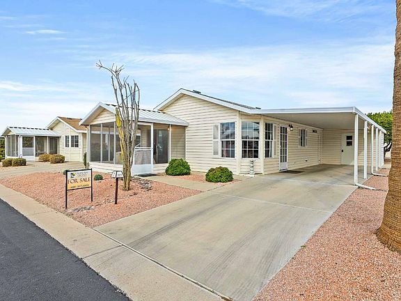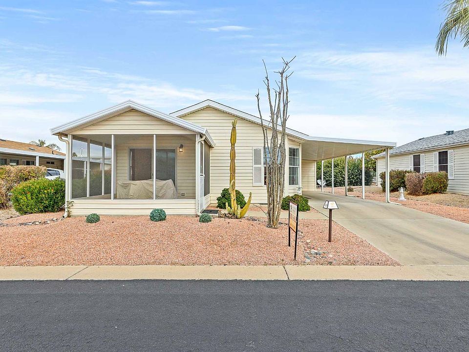 This home is clean as a whistle and move in ready. Enjoy lovely neutral palette with plenty of natural light coming in the well placed windows! This is a 2 bed 2 bath home with vinyl plank flooring throughout except for the new carpet in the bedrooms. There is great outdoor space with a lovely screened in AZ room up front and plenty or more private space in the back PLUS 2 amazing citrus trees to enjoy and share with friends!! Call today, this is a lovely home! New Disposal and R/O,Tasty Orange and Pink Grapefruit Trees,Freshly Painted! Experience Thesman Communities Lifestyle, we are an active 55 plus community where luxury meets affordability. For over 40 years we have set the standard with world class amenities and year-round activities. Our community is a 24-hour gated community, with a beautiful 30,000 square foot clubhouse including ballroom, fireside lounge, library with computers and individual rooms for cards, billiards, arts & crafts and fitness center. Enjoy outdoor amenities heated pool & spa with cabanas, BBQ area, putting green, pet park, sport courts for pickleball, tennis, bocce, shuffleboard and basketball. Our activities director assures a full calendar of social and recreation events. Our shuttle bus makes it easy and convenient to attend sporting and special events, plus local shopping. Whether you want to relax or stay active our vibrant communities offer everything you need to enjoy life to the fullest. Discover Thesman Communities and start living the Thesman Lifestyle today!